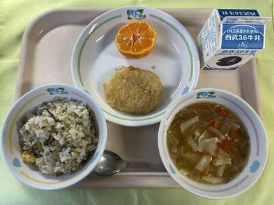 今から72年前、学校給食の調理師さんが、学校を休んだ子のためにパンを揚げ砂糖をかけて届けた、というエピソードから誕生した揚げパンを取り入れました。