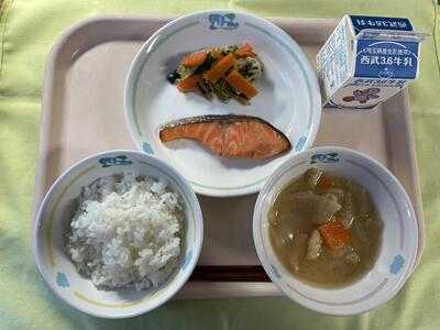 今日は学校給食週間の最終日にちなみ、カレーライスを取り入れました。小手指小学校のカレーは、小麦粉と油からルゥを作っています。じっくりと火を入れて練るので、2時間目くらいから校舎にカレーの香りが立ち込めます。