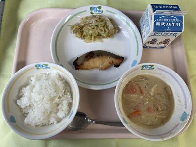 ごはん 牛乳 鰆の西京焼き キャベツのおかか和え 豆乳ごま汁