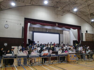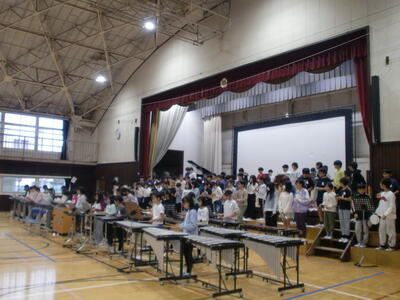 校内音楽会では、体育館の窓を全開にして換気をよくしたり、できるだけ児童の座る間隔を広げたり、開閉会式を放送で行うなどして感染症予防に努めました。しかし体調がすぐれない児童が増えたため、音楽発表会では2学年が発表できす、大変残念でした。後日、発表の機会を設け、児童の頑張りをお披露目できればと思います。