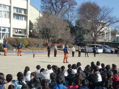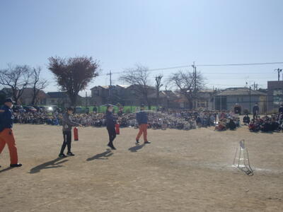 今回は、大地震が発生し、その後家庭科室から出火したという想定で、子供たちを安全に、迅速に校庭に避難させる、という内容でした。