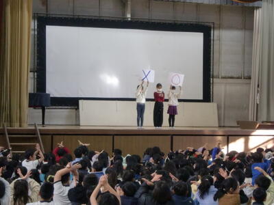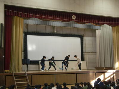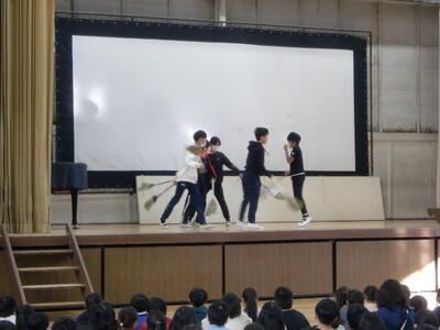 後半は寸劇です。無言清掃を黙々とするには何が大切かを考える劇でした。悪い見本のハチャメチャぶりに、子供たちからは大きな笑い声が上がりました。こちらもとてもいい学びになったと思います!