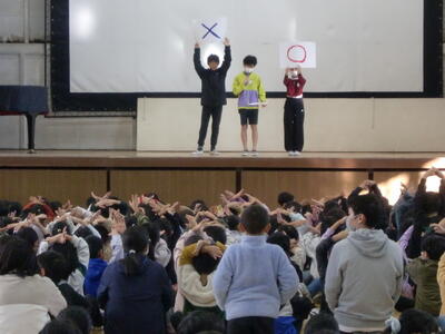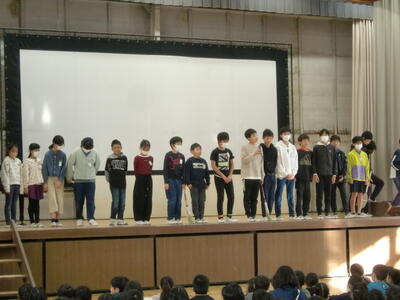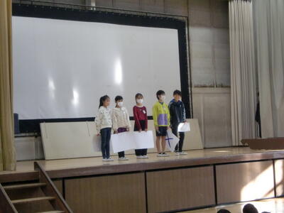 12月12日(金) 児童朝会で美化委員会の子供たちが発表を行いました。