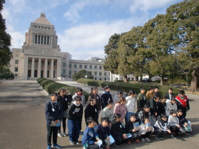 バスが国会議事堂ののそばまで来たとき、子供たちの口々から感嘆の声があがりました。社会科の教科書に載っていた国会議事堂に来て、実際に中に入って見学できることに感激している様子でした。