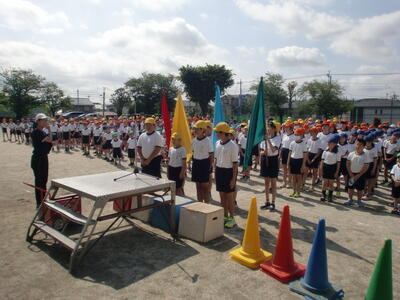 新しい学年になって初めての練習だったので、戸惑っている子供たちもおりましたが、集合、整列の練習を繰り返すうち、掛け声も大きく、素早く行動できるようになってきました。