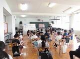 とてもいいお天気の下、全校児童が校庭に集いました。