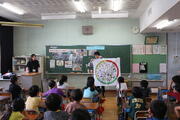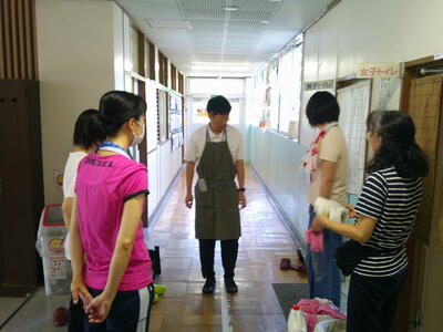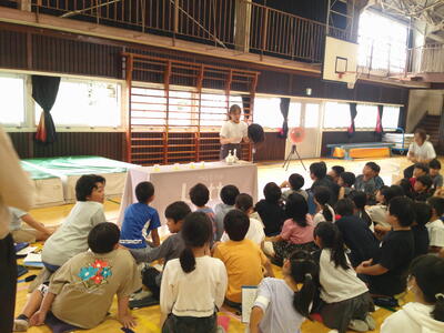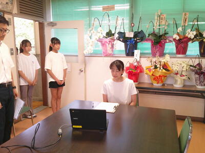 暑さ対策のため、オンラインで行い、子供たちは教室での参加となりました。